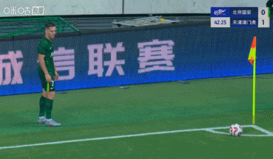 第43分钟,国安扳平比分,又是角球机会,塞尔吉尼奥开出,达万抢点头球破门,国安1-1津门虎。↓