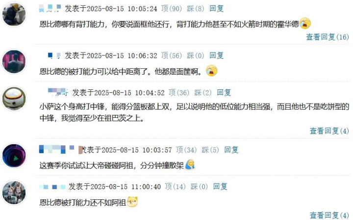 恩比德的左膝伤势似乎不可逆转,即没法根治有着随时复发风险,今年8月初有美记爆料他的膝盖状况还是不佳,极有可能缺席新赛季训练营开始阶段......听说,费城管理层已经对去年夏天提前续约前者的决定感到后悔。