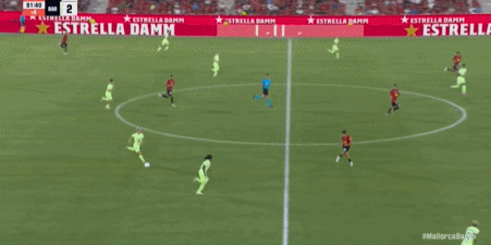 拉什福德试图起速、直线突破,万万没想到,英格兰边锋踩了球车,右脚脚后跟踩到球,结果是人往前冲,球岿然不动。马洛卡的萨拉斯不费吹灰之力,轻松获得球权,巴萨的进攻戛然而止。