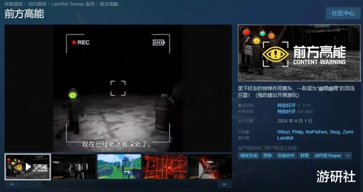 这家工作室此前最出名的游戏是风格搞怪的《全面战争模拟器》,不过在近几年里,他们的开发重心已经逐渐转向了适合直播的多人合作游戏。去年那款模拟“幽哩幽哩主播”的《前方高能》(Content Warning)就是他们的作品。