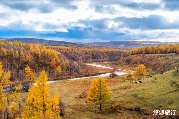 途中会经过绰尔河农场十大湾,可将车停在停车场,走上山坡观赏绰尔河的秋景。