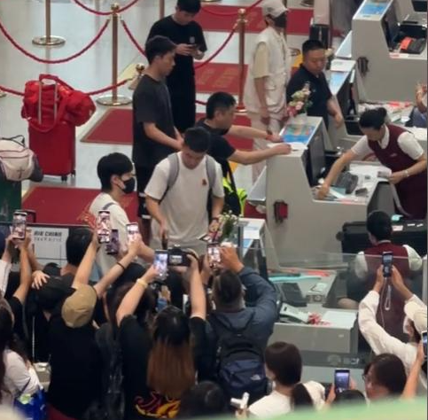 球员们沉默地加快脚步,只想尽快完成值机,而跟拍的人群却像潮水一样随他们移动,直到安检口才不得不停下。