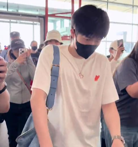 王楚钦戴着口罩,肩上的蓝色背包格外显眼,但再低调的装扮也挡不住四面八方涌来的手机。
