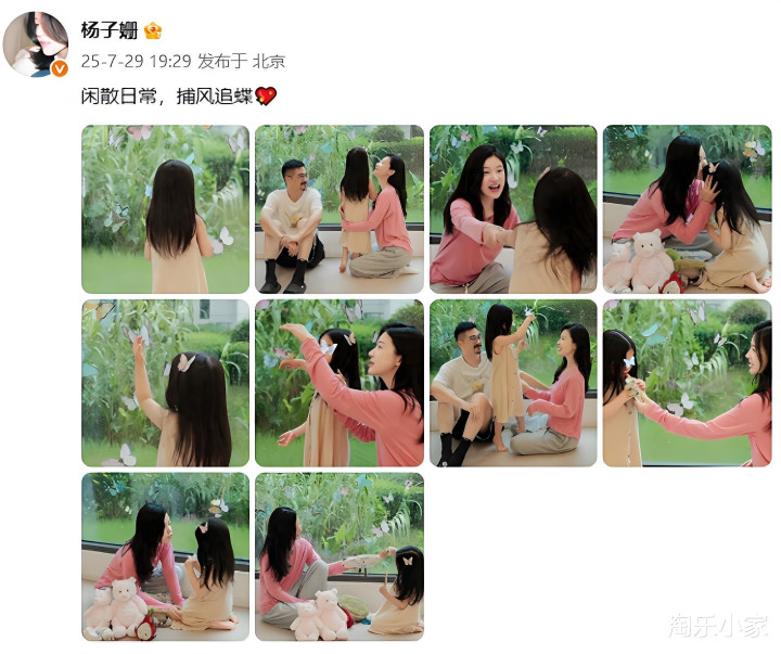 嚯!失踪人口杨子姗终于冒泡了!(7月29号)直接甩出一家三口“别墅的田园诗”——跟老公吴中天联手“围捕”小蝴蝶!这画面,啧啧,幸福浓度严重超标,甜齁了属于是!