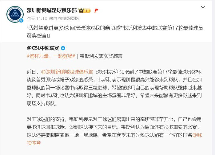 当韦斯利站在中超第17轮最佳球员的领奖台上,手捧奖杯的瞬间,深圳新鹏城球迷的欢呼声几乎要掀翻宝安体育场的顶棚,这个巴西外援的首秀,用一场“帽子戏法”直接封神!三粒进球、一次MVP、满场球迷的“韦斯利之歌”,这位新援用最暴烈的方式向中超宣告:深圳新鹏城,要换天命了!如何看待他这次捧杯?