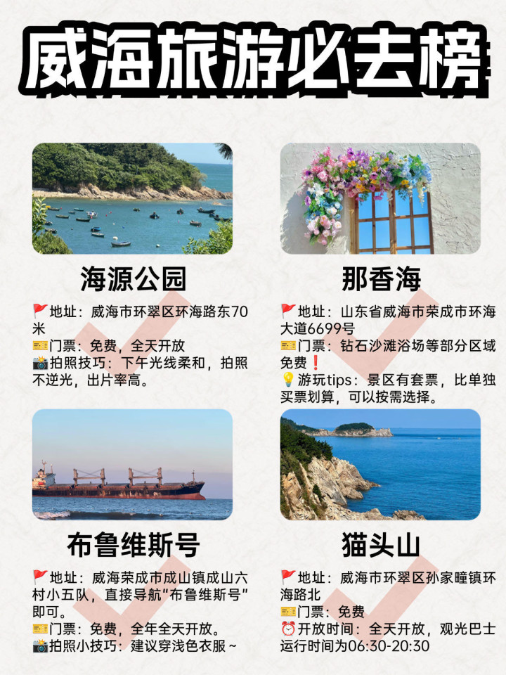 去威海一定要做好攻略,之前我朋友第一次去就绕了很多弯路,今年我带着攻略去了!是真的玩爽了,给想去威海的宝子一点参考!