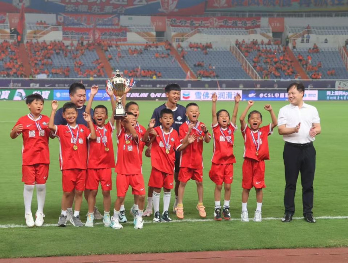 获得冠亚季军的“泰山小将”团队和最佳阵容,在中超现场数万球迷的见证下接受颁奖,让每一个孩子的闪光点都被看见、被表彰,这一荣耀时刻成为小球员们终身难忘的记忆。
