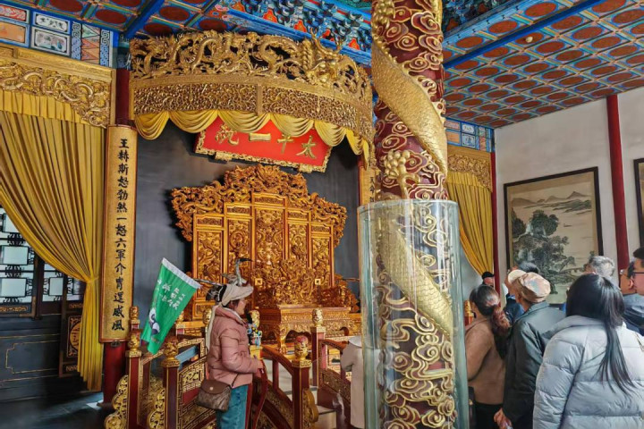 占了座清代官邸当王府,具体位置就在绍兴市区下大路附近的来王殿,如今门厅墙内还留着褪了色的云龙彩绘。