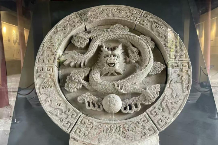 高浮雕混着透雕,龙须根根分明,五趾爪按在火云纹上青筋暴起,目前被评为国家一级文物。