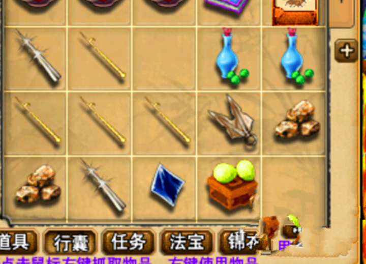 看到上面这位玩家道具栏里的东西了吗?上面这位玩家的道具栏中现在放着大量的暗器,这些暗器就是上面的这位玩家在抓鬼任务中获得的,这是这位玩家完成了30次抓鬼任务以后所获得的奖励,除了暗器没有看到别的。
