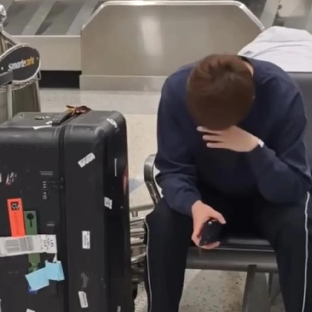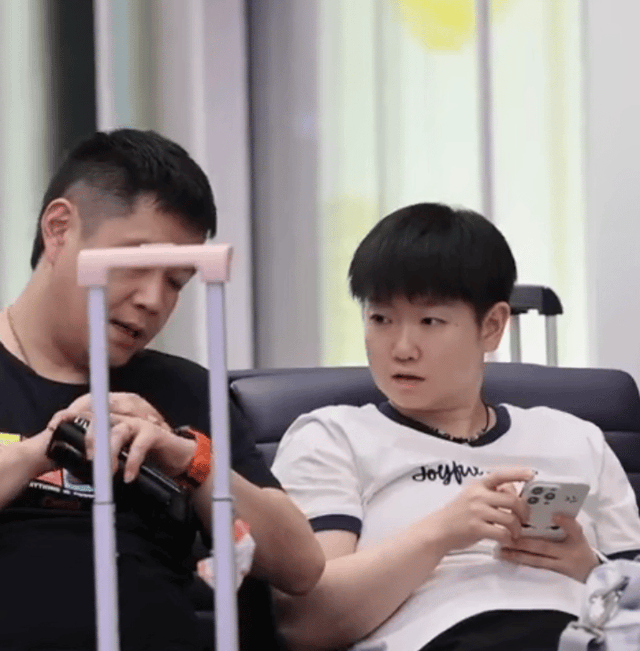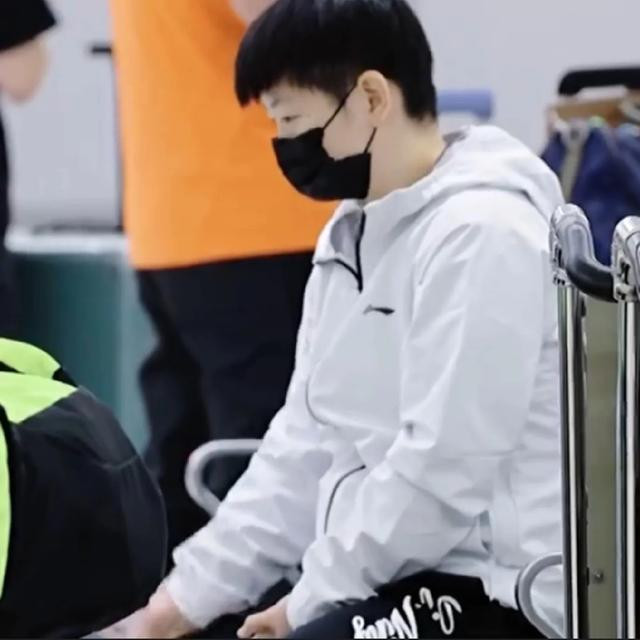 孙颖莎先是坐在行李箱上面,后坐在椅子上等候,旁边是队医袁朝明,王皓、王艺迪。旁边是她的小白包和一个行李箱,看了看手机,报平安吧。明眼看得出是劳累的,两天奔波两个地方。