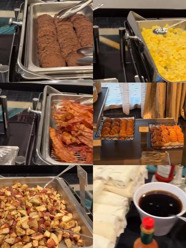 吃的种类较为简单了,从外协运动员拍摄到的,就是各种各样的面包,肉的种类没有几个,目前看到就是鸡肉和牛肉、煎鸡蛋,点心甜点碳水类多,蛋白质少。不过酒店下面很多商店,他们也会找到自己喜欢吃的店或者中餐。