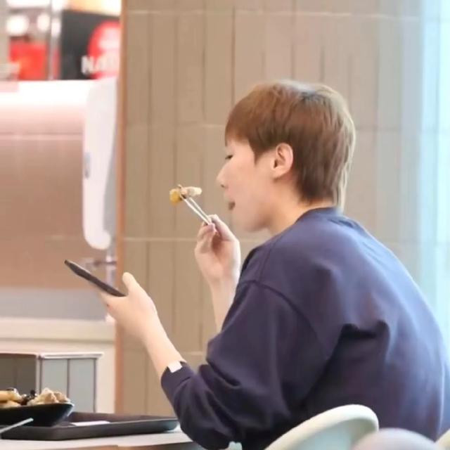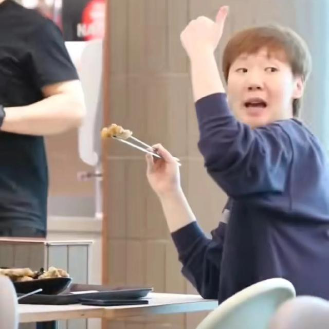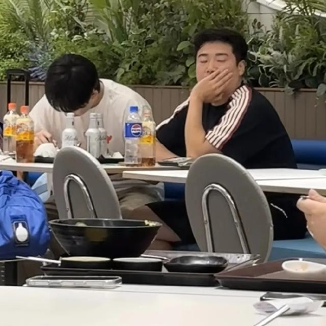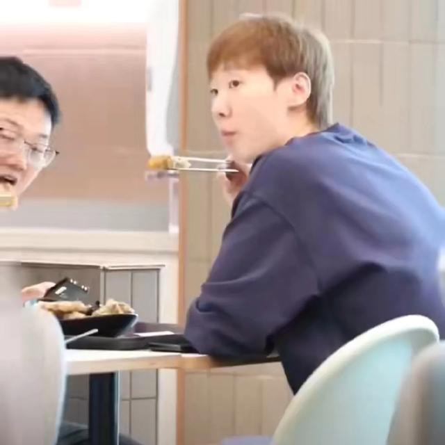 林高远就吃得开心,比较合胃口,吃完还摸了摸肚子,吃的饱饱的,还抿了一下嘴唇,有一种“食到返寻味”的样子,他曾经在杂志的采访中说到,他不挑吃,吃完笑着和队友聊聊天、消消食。