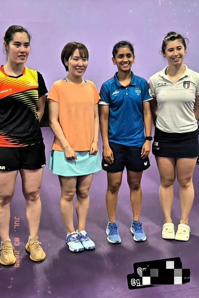 外协运动员有些早已经到达,因为他们要比赛,打资格赛。邱党、奥恰洛夫等等分享了和樊振东的合照,樊振东谈笑风生。印度的阿库拉、日本乒乓球平野美宇,昨天已经在美国的乒乓球俱乐部进行适应训练。