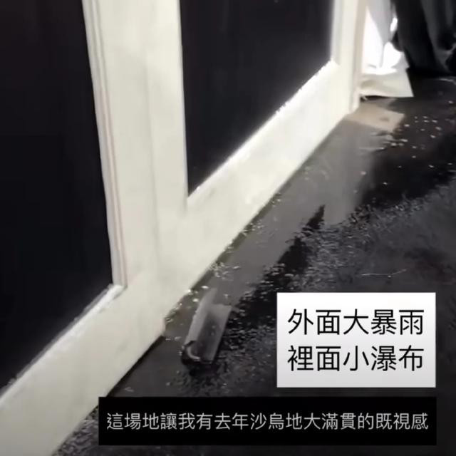 外协吐槽,外面大雨,室内“下”小雨,靠边的球桌还是会飘进雨,在缝隙中,雨水冲进来。