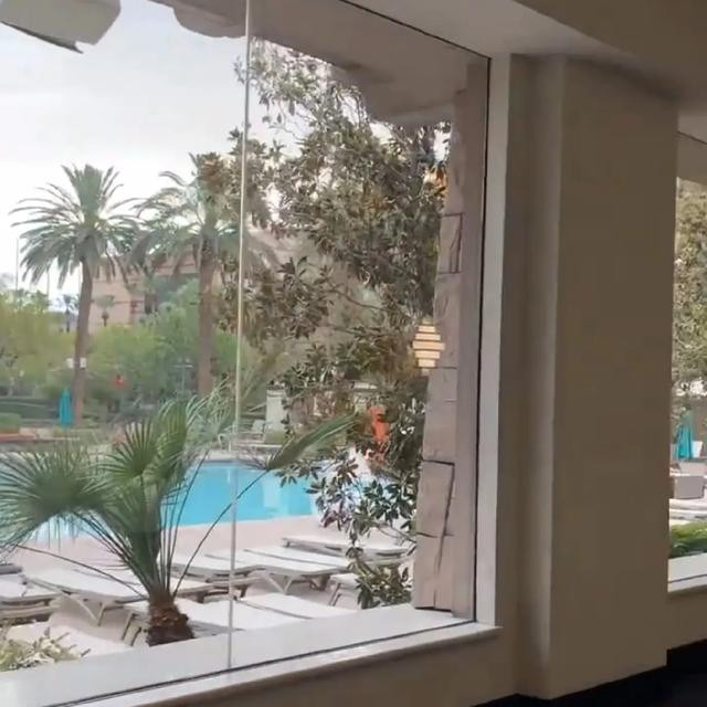 美国拉斯维加斯的饮食肯定和北京的不同,在酒店的餐厅,有好多菠菜机器,住宿的环境优美,就是酒店有点大,有游泳池,外面天空蓝,绿色的树木。