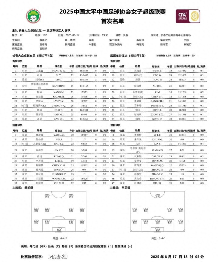 赛前训练中,“消失”了两轮的王霜和新援奥乌苏双双回归,一度点燃了武汉球迷的期望,盼其能提振士气。然而,王霜此役依旧无缘大名单,而加纳新援奥乌苏也仅列于替补席,整场枯坐板凳。奥乌苏此前在对阵陕西的比赛中完成首秀,表现平平,主教练常卫魏坦言其“时间紧、磨合少”,“还有待融入球队”。本场,这种进攻端乏力的困境,在武汉阵容状态起伏的背景下被进一步放大。