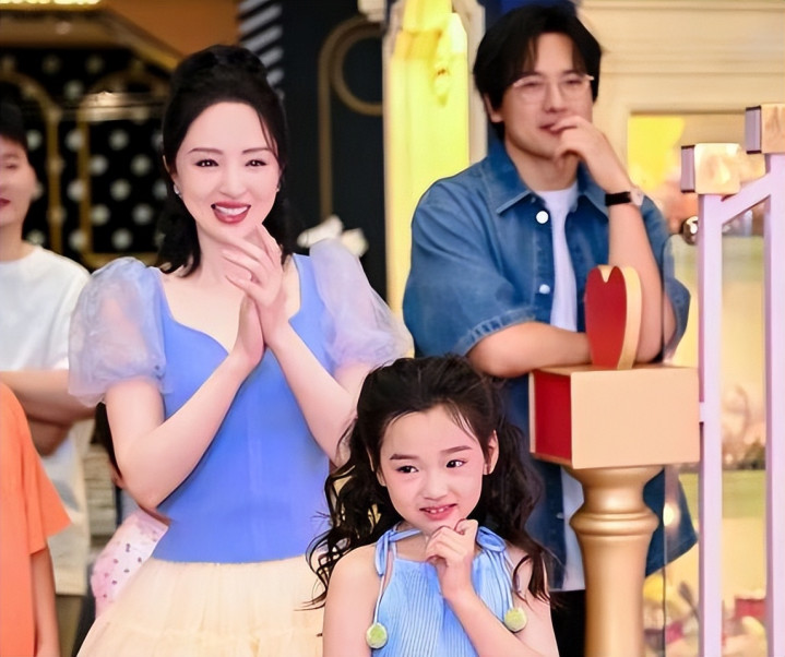 还有那张一家三口为小酒窝庆生的照片,董璇和小酒窝身着一样的紫色白纱裙公主装,而高云翔身着蓝色牛仔休闲装,在后面望着自己的妻女。